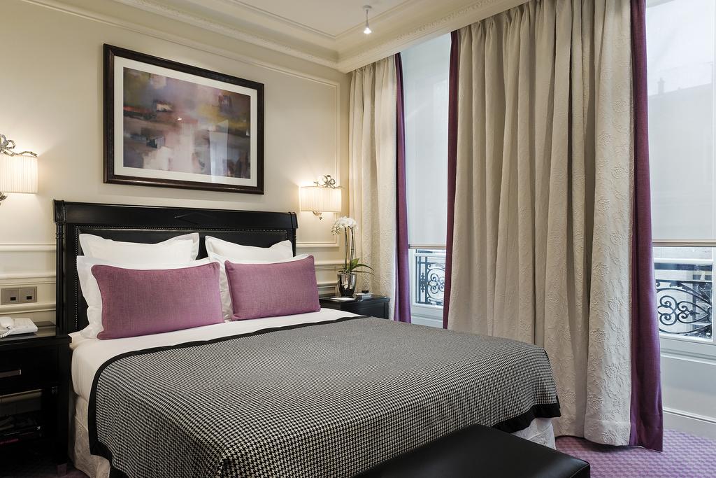 В этом номере с видом на улицу установлена кровать размера "queen-size". ...