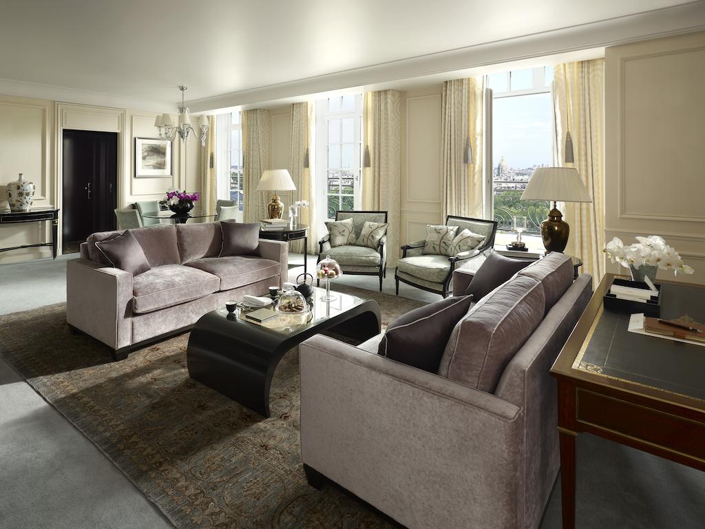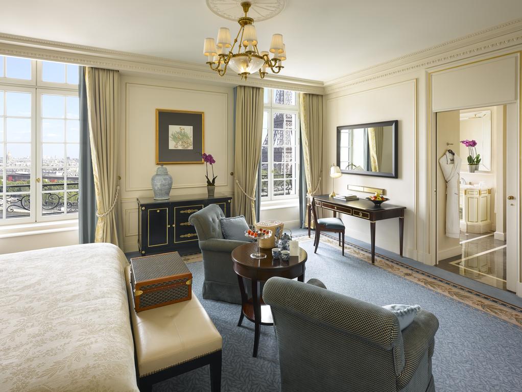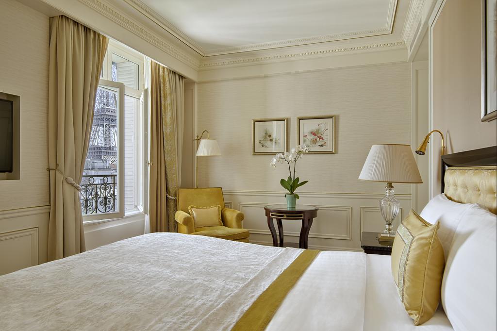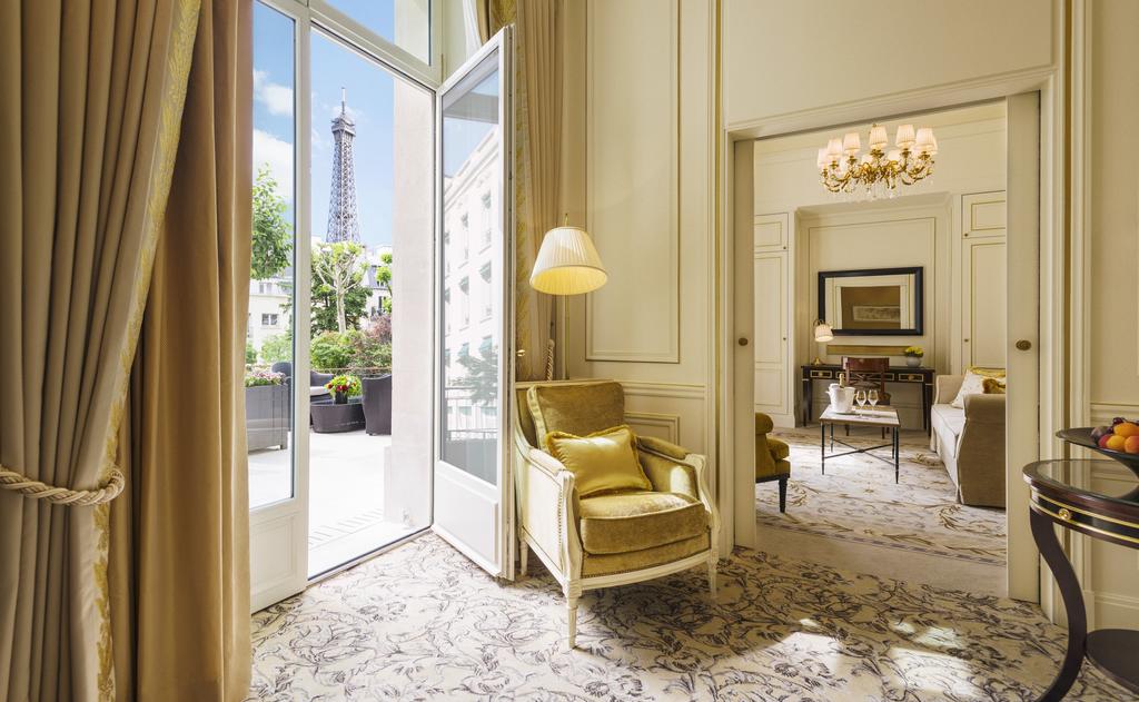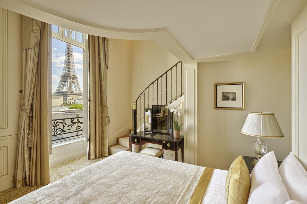 Из этого двухуровневого люкса открывается вид на Эйфелеву башню, реку Сена и Париж. В нем...